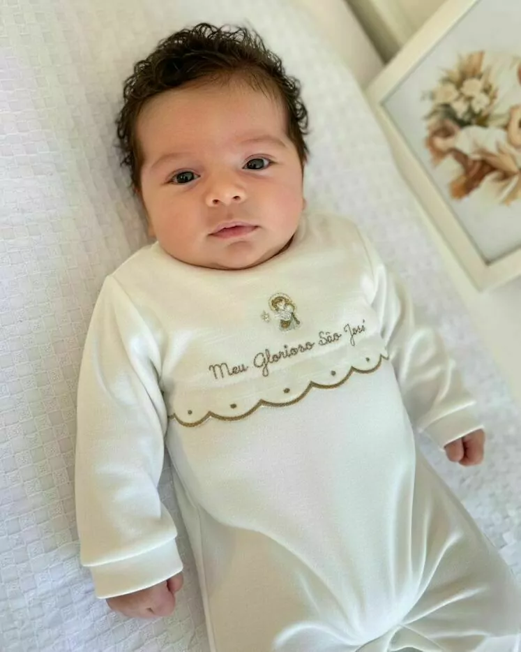 Este macacão para bebê combina conforto e delicadeza com o bordado exclusivo do Glorioso São José na gola. Produzido em suedine 100% algodão, oferece toque macio e acabamento de qualidade para a pele sensível do seu pequeno.