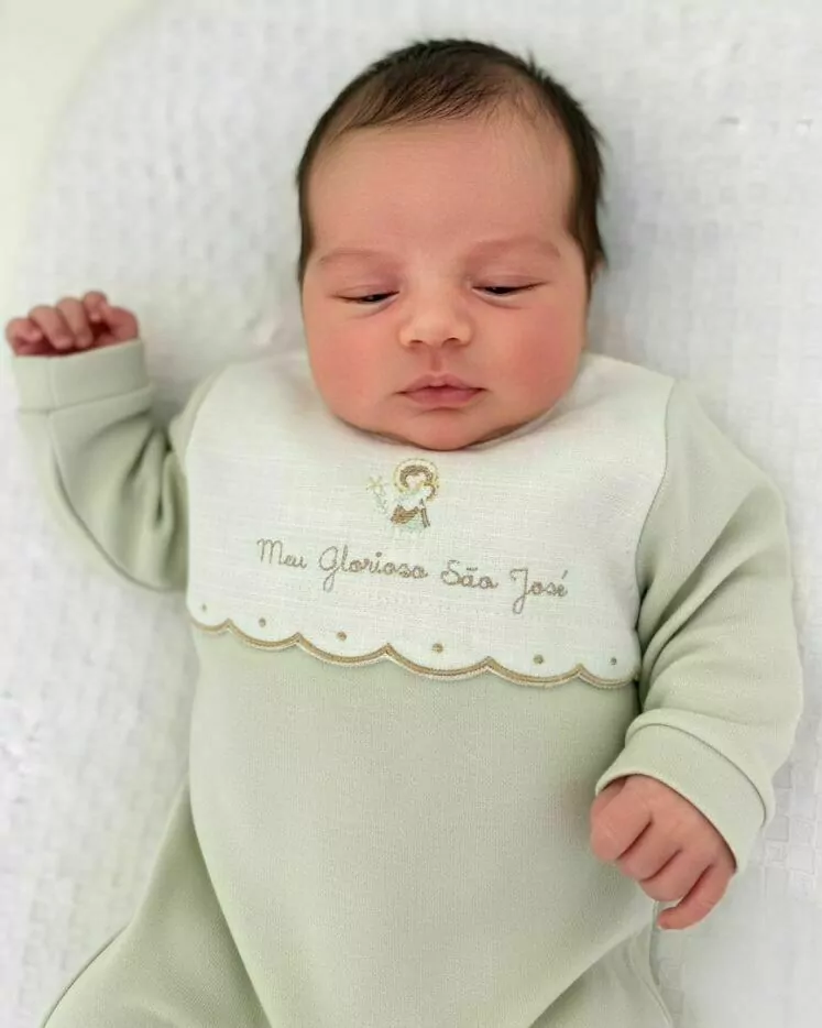 Macacão Glorioso São José da marca Kafka Baby é feito em suedine 100% algodão, para recém-nascidos. O tecido é macio e confortável, oferecendo toque suave que protege a delicada pele do bebê. A peça possui bordado exclusivo na gola que destaca a frase “Meu Glorioso São José”, conferindo um toque de fé e carinho. Sua cor verde suave combina com momentos especiais e os botões entre as perninhas e nas costas proporciona praticidade na hora de vestir o bebê. Além disso, a qualidade do material garante durabilidade e facilidade na lavagem, sem perder o conforto.