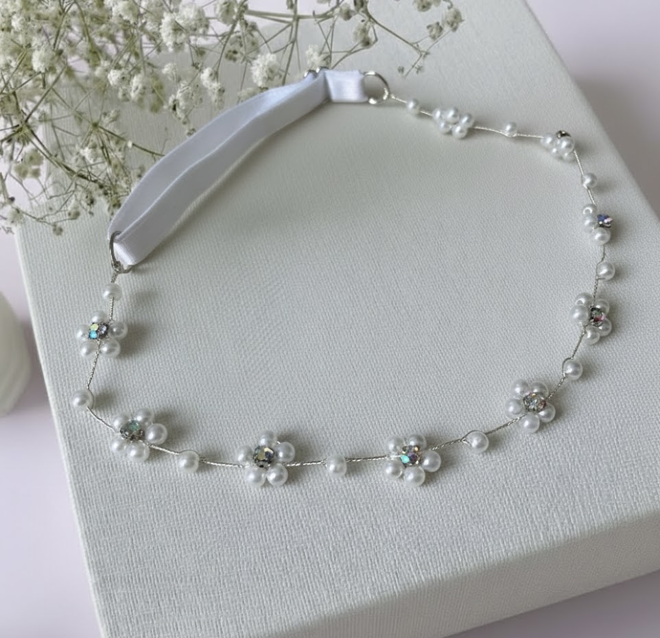 Tiara para batizado e casamento feita a mão com aplicações de pérolas e pedras. Confortável , não machuca a cabecinha, para que a sua princesa fique ainda mais linda em momentos especiais! Possui regulagem